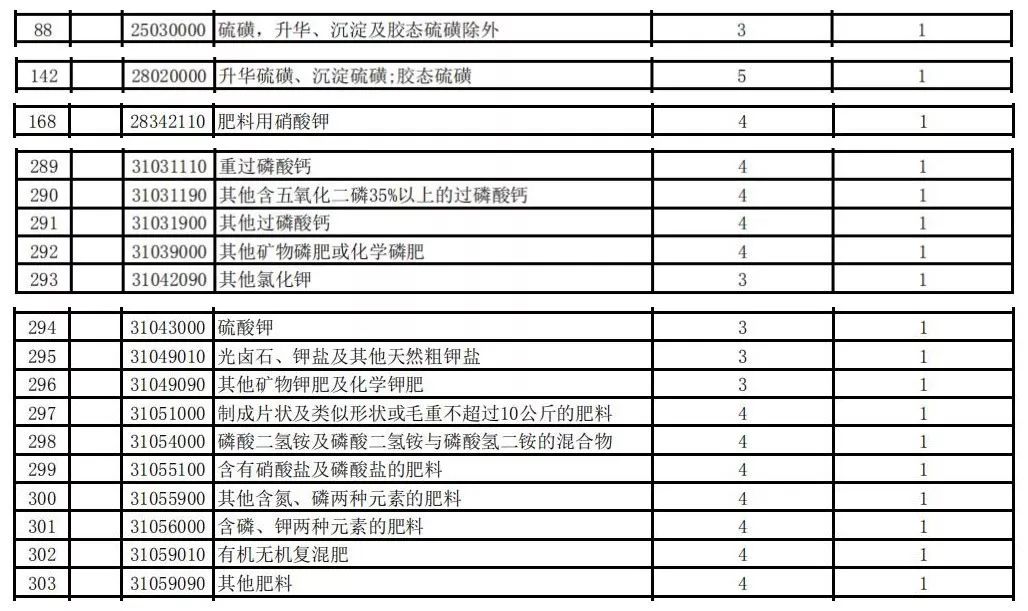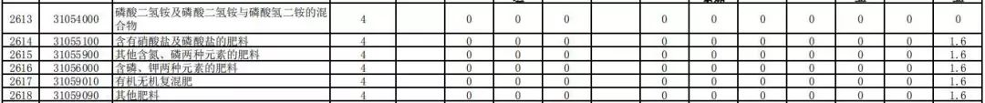 在进口关税方面,硫酸钾、磷肥、含氮磷两种肥效的化肥肥料、其他肥料等,2020年暂定关税均为1%。