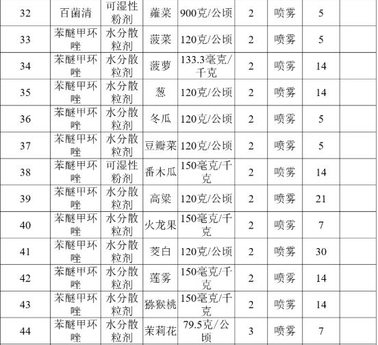 附件:特色小宗作物农药残留风险控制技术指标(表格部分内容)