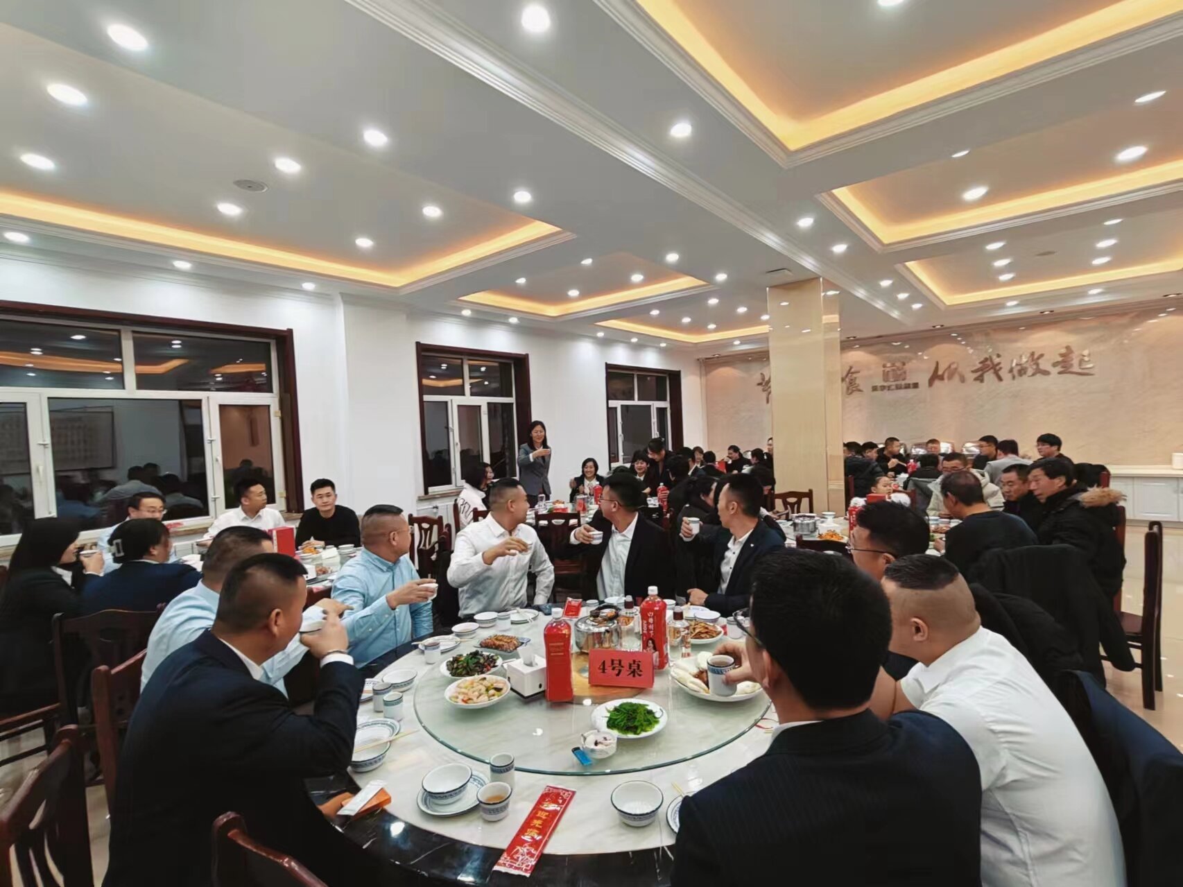 29日晚,全体员工在园区食堂聚餐,大家围坐在一起,聊过去一年的辛苦与欢乐,在热气腾腾的美食美酒前憧憬着新春新年。