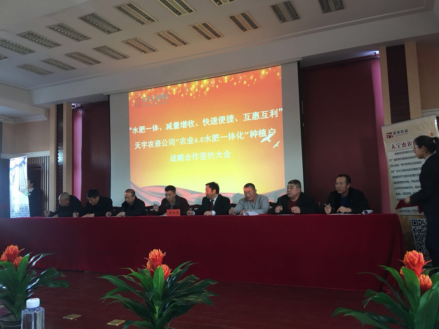 2018年2月5日9:30我集团旗下乌兰察布市天宇农资公司农业4.0水肥一体化种植户战略合作签约大会胜利拉开帷幕,会议以“水肥一体、减量增收、快速便捷、互惠互利”为主题,旨在通过水肥技术推广,为当地种植大户提供最方便快捷的服务。